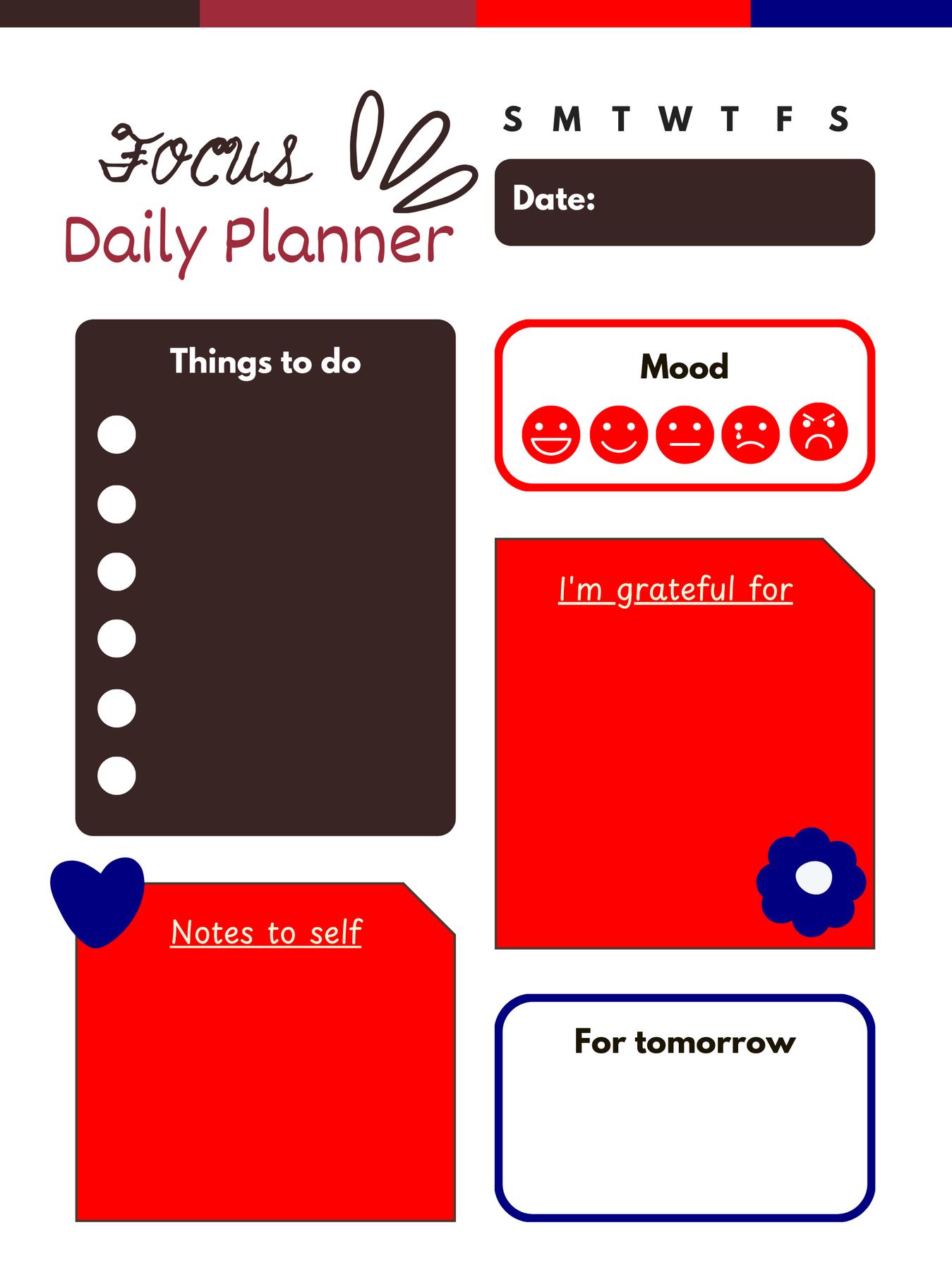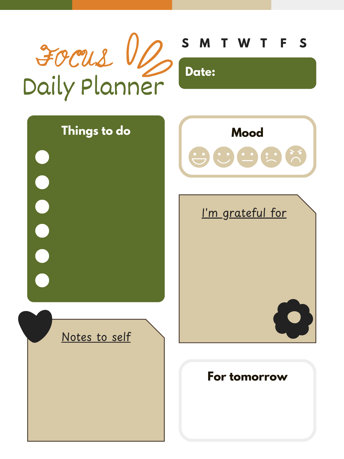 ✔Daily To-Do List – Stay organized and complete your priorities ✔Mood Tracker – Check in with yourself every day ✔Gratitude Section – Build a positive and mindful mindset ✔Notes to Self – Capture ideas, reminders, or reflections ✔Tomorrow Planning Box – Start the next day prepared ✔Date & Weekday Tracker – Keep your schedule clear and simple