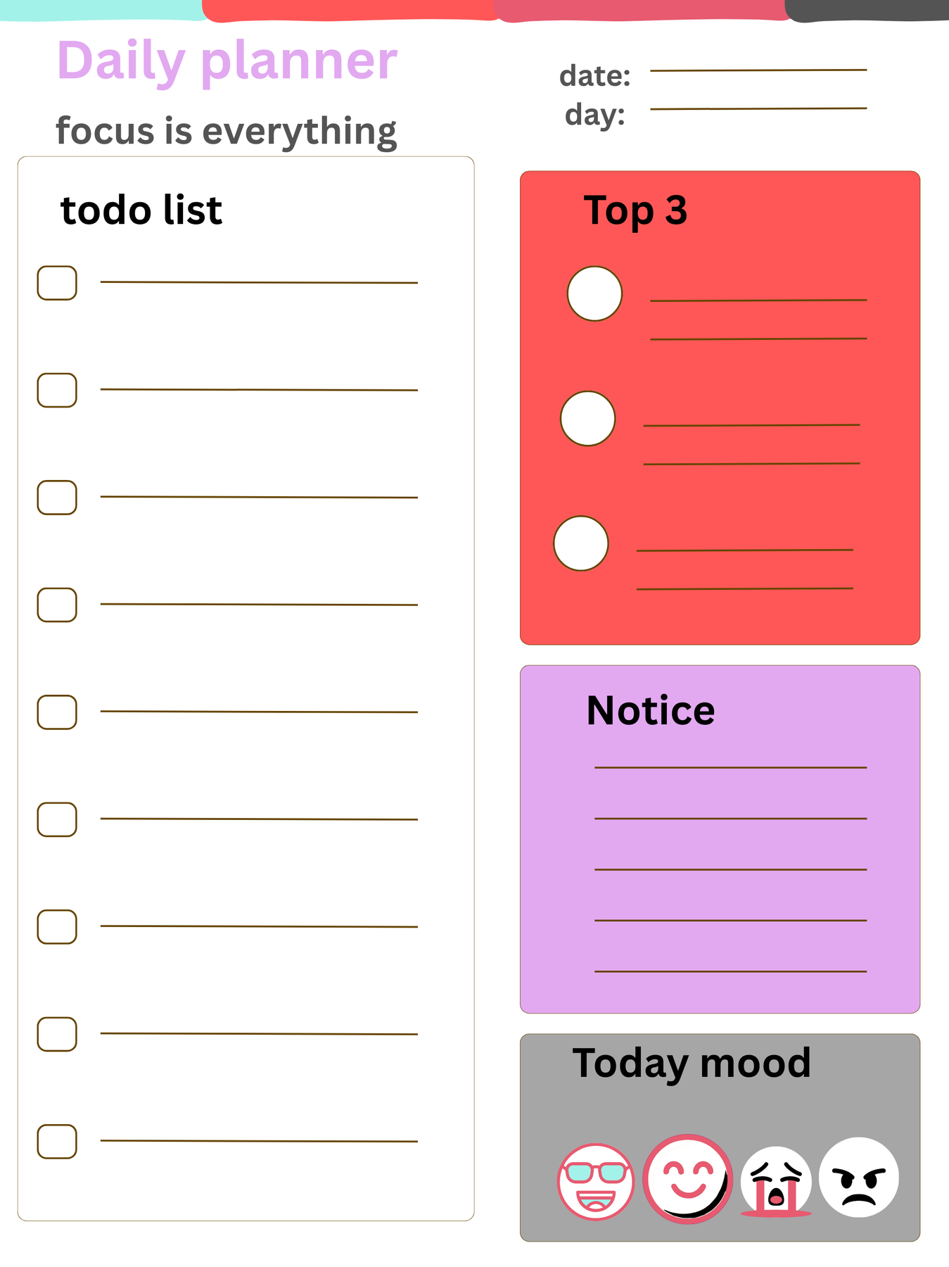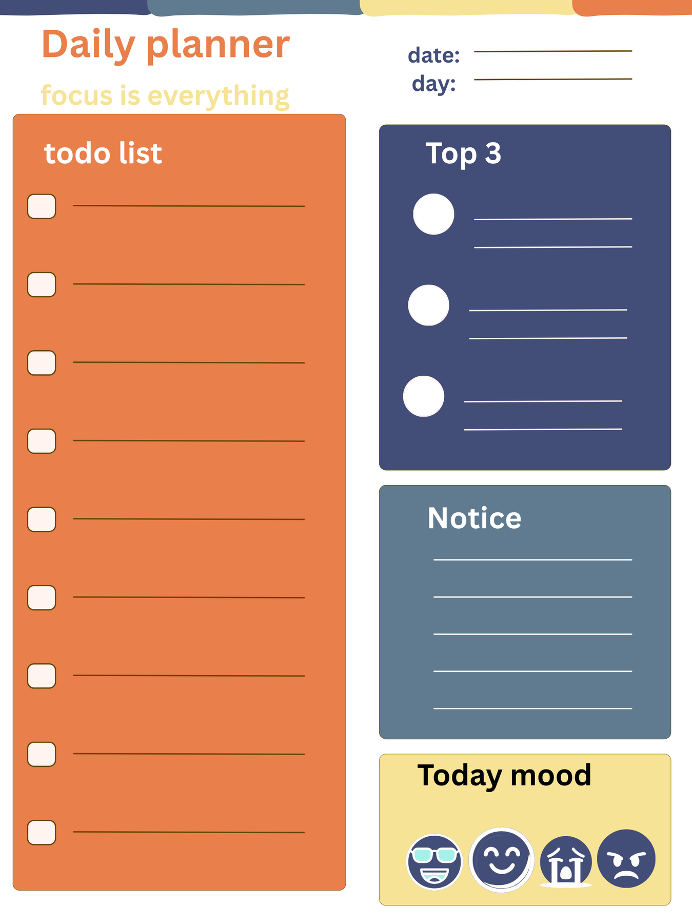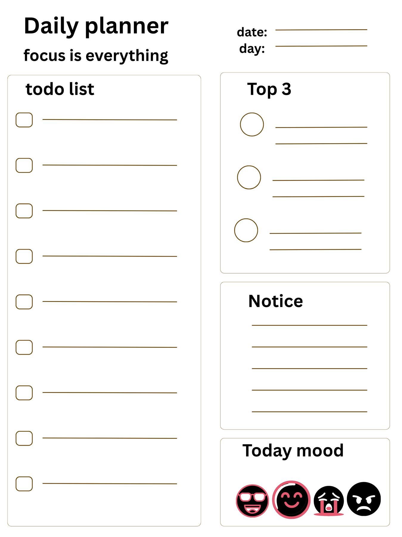 Stay in control of your day with the Daily Planner — your simple, effective solution to staying organized, on time, and motivated.